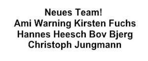 geht es wieder los — mit neuem Team: Ami Warning, Kirsten Fuchs, Christoph Jungmann, Hannes Heesch, Bov Bjerg.